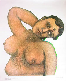 Always a powerful artist, Chowdhury developed his individual style after his return from France in the late '60s. Although Chowdhury has painted oils, his forte is painting in ink, water color and pastel. The sinuous line contouring the flaccid figures, the crosshatching to achieve tonal variations distinguish Chowdhury's paintings which show men and women m enigmatic situations with provocative gestures placed in a dark dream- space. There is a bit of the theatre of the absurd.