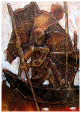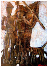 PARESH HAZRA: Born in 1952 in Tamluk, Midnapore district of West Bengal, Hazra graduated from the Govt. College of Art, Calcutta with a first class. He obtained a Post Graduate Diploma in the Teaching of Art in 1980. He has had numerous solo shows in Bangalore, New Delhi, Calcutta, Chennai and Pondicherry and his work has been shown abroad in group shows. He is the recepient of many awards, among them the Silver Medal from the Oriental Art Society, Calcutta – 1977, Certificate of Merit, Govt. College of Art, Calcutta – 1987 and the Birla Academy Award, Calcutta – 1990. His work is in the collections of many prestigious organisations and private collections throughout India and abroad. Hazra works mainly with old egg tempera on canvas board, in a figurative style, with brilliant colours and strongtextures. |