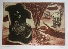 V G VENUGOPAL: Born in 1976, Venugopal obtained his BFA in Painting (with Gold Medal) from Chamrajendra Academy of Visual Arts (CAVA), Mysore in 1998 and MFAaster Printmaking form Chitrakala Inistitute of Advanced Studies, Karanataka Chitrakala Parishath, Banagalore in 2000. He received the National Lalit Kala Akademi scholarship, 2000-2001 and National scholarship from the Dept. of Culture, Govt of India 2001-2003 and the Karnataka Lalit Kala Academy Award in 2000; 67th All India Exhibition AIFA Award, Amritsar, 2001; Mysore Dasera Award and CKP Award, 1999. He received the KK Hebbar Art Foundation Gold Medal from University of Mysore,1998.Venugopal has participated in various exhibitions such as the 42nd and 47th National Exhibition of Art, Lalit Kala Academy, New Delhi; 6th Bharat Bhavan International Biennale of Print Art, Bhopal. He has attended various national and state level camps and workshops and is at present visiting faculty at Centre for Visual Arts, SBMTC, Bangalore and contributes illustrations for Khushi comics. Venugopal lives and works in Bangalore, India. |
